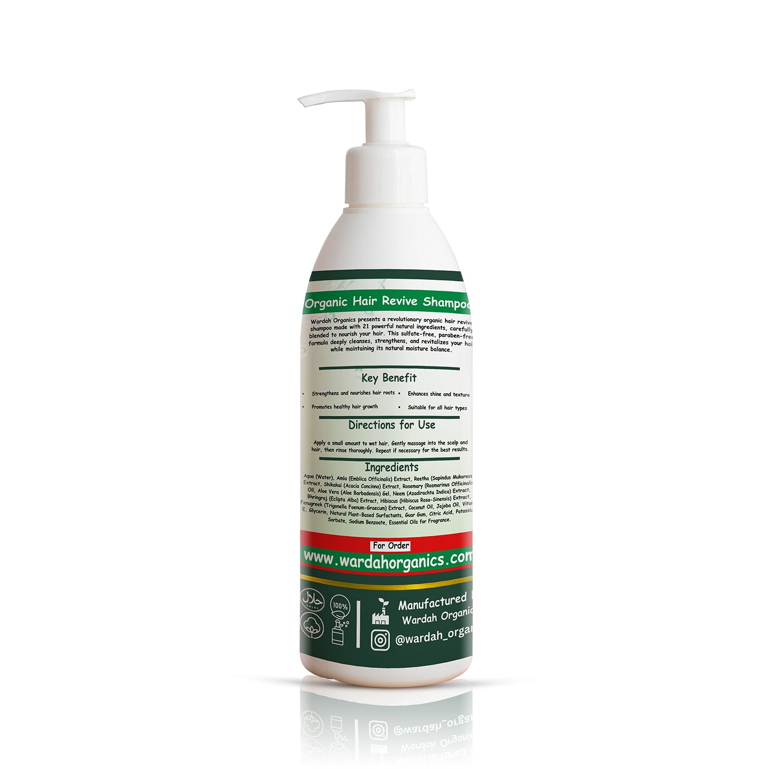 Hair Revive Shampoo by Wardah Organics is a premium, sulfate-free natural shampoo crafted with a potent blend of 21 natural ingredients to boost volume, enhance hair thickness, and rejuvenate the scalp. Designed for all hair types, it gently cleanses without stripping away natural oils. The infusion of herbal extracts and essential oils supports hair strength, reduces hair fall, and promotes healthy regrowth. Its nourishing formula restores shine, controls frizz, and soothes itchy, irritated scalp—all without any toxic chemicals.